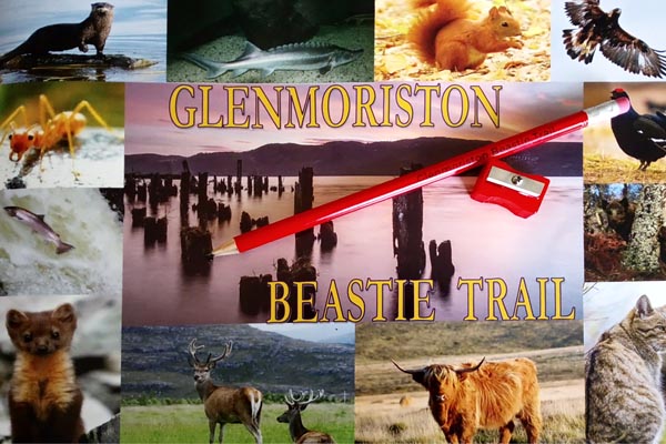 Glenmoriston Beastie Trail is a self-guided walking and driving tour of the Glenmoriston area providing an easy and fun way to discover the main landmarks, historical features and viewpoints of the glen while also collecting "brass rubbings" of 12 special beasties that have strong connections to the local area.